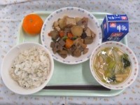 ・牛乳・七草ご飯・炒り鶏・白菜のみそ汁・みかん