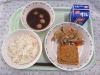 ・牛乳・ご飯・松風焼き・大根と車麩の含め煮・おしるこ