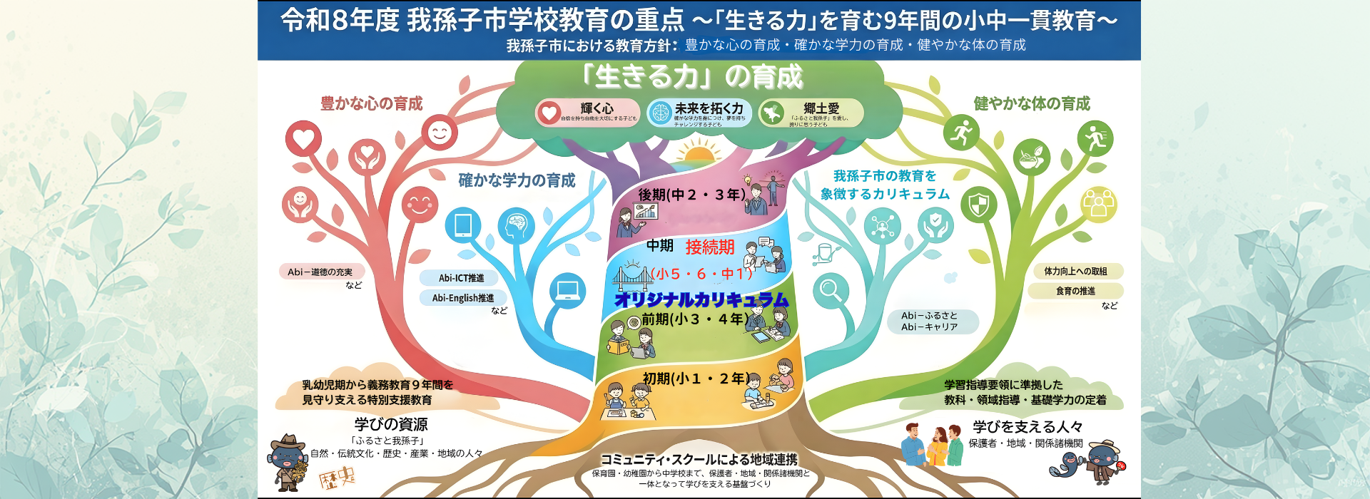 我孫子の教育をより身近に感じていただき、子どもたちの成長を学校・家庭・地域でともに支えていくための情報ページとして、ぜひご活用ください。